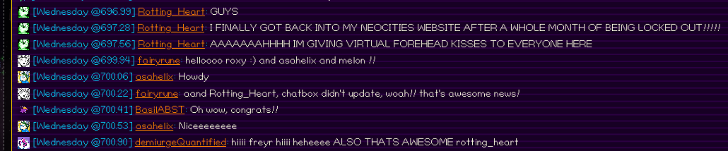 After a month of being locked out of this site due to my computer breaking and the password not working for some reason, I finally got in! Shoutout to the neocities support team for helping me :) and thank you to the melon land forum for being so nice!